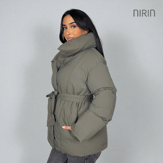 Moderne Short Pufferjas met Ceintuur