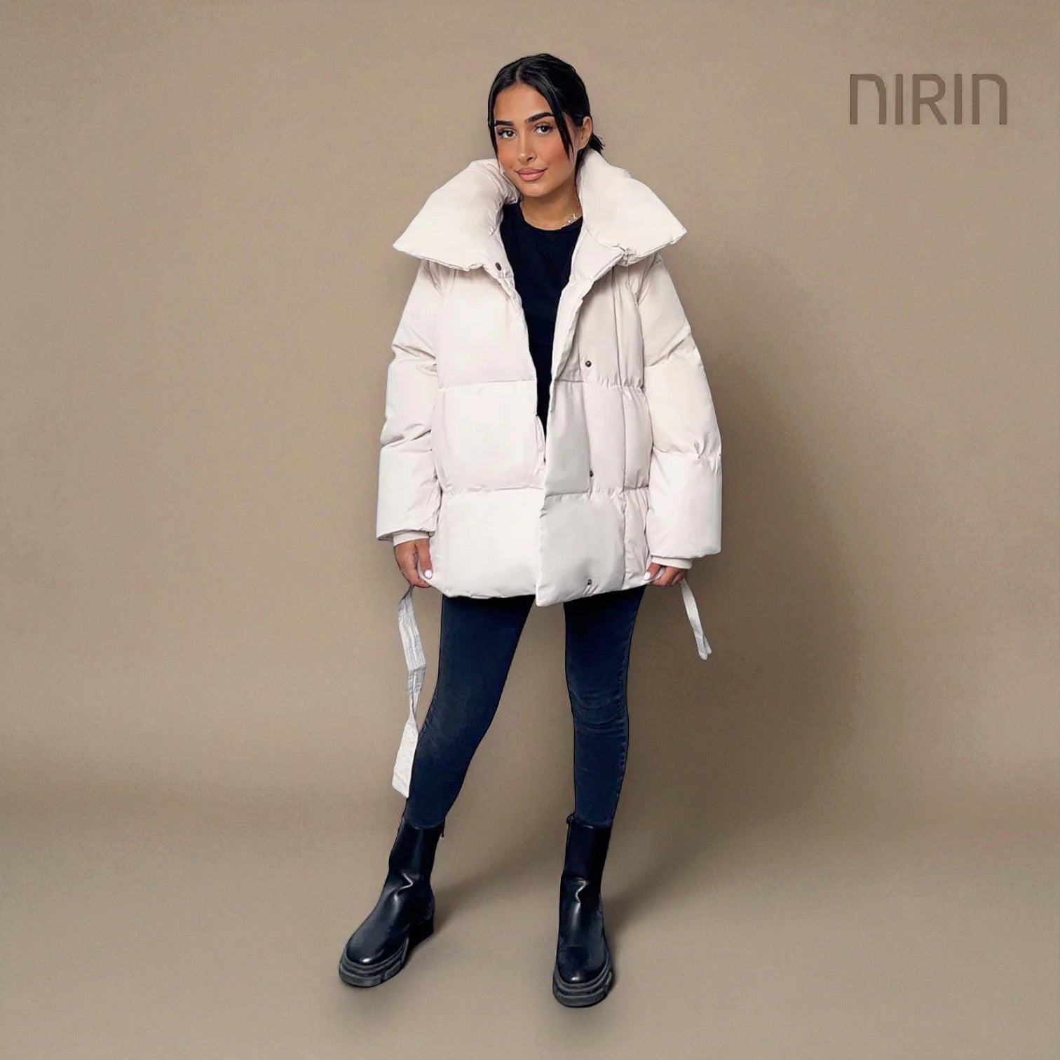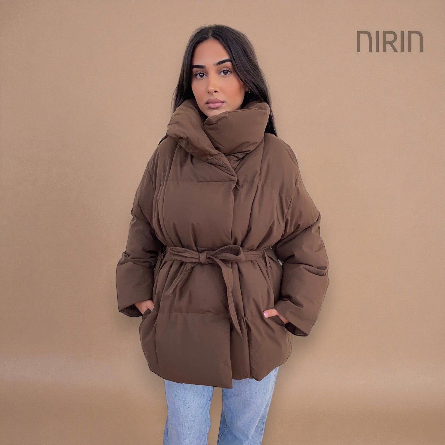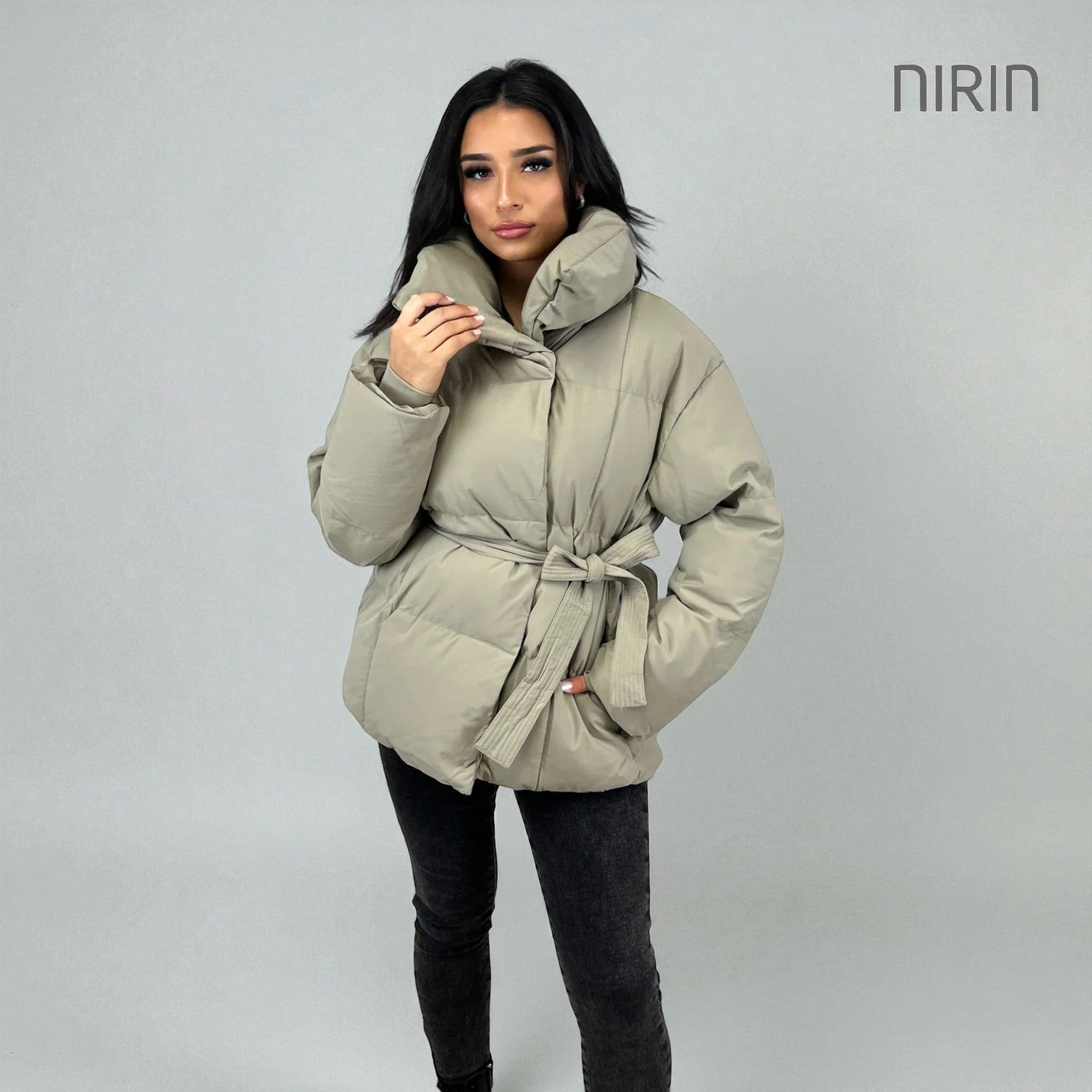 Moderne Short Pufferjas met Ceintuur