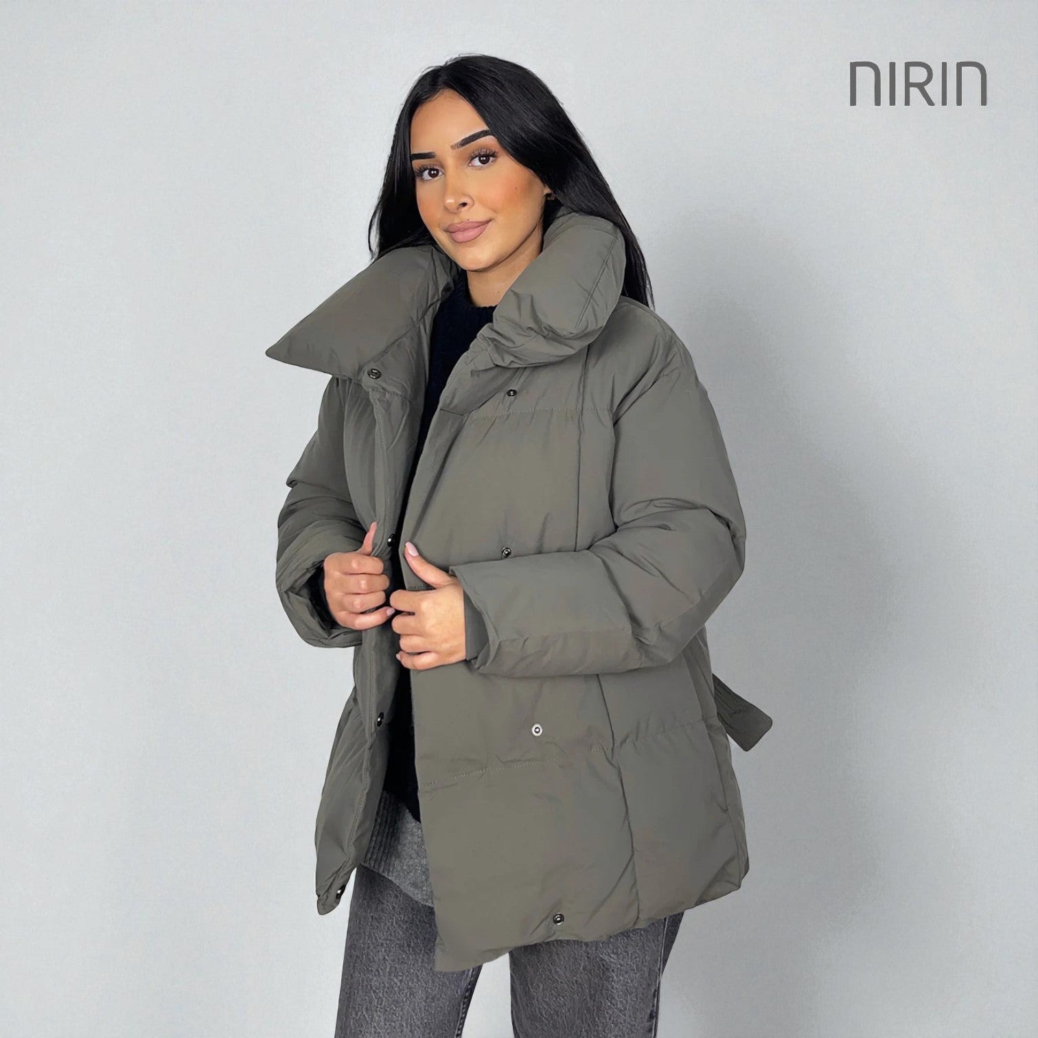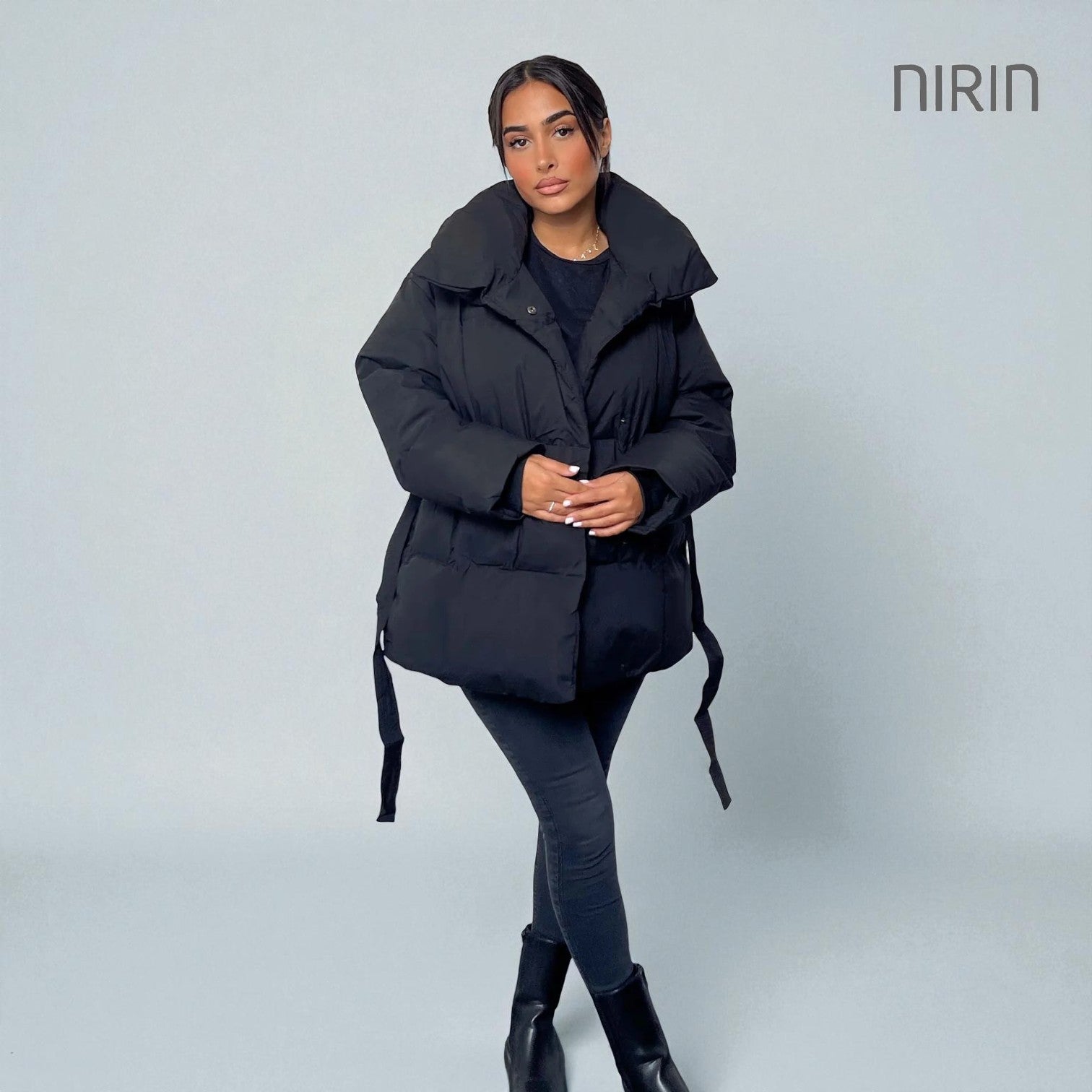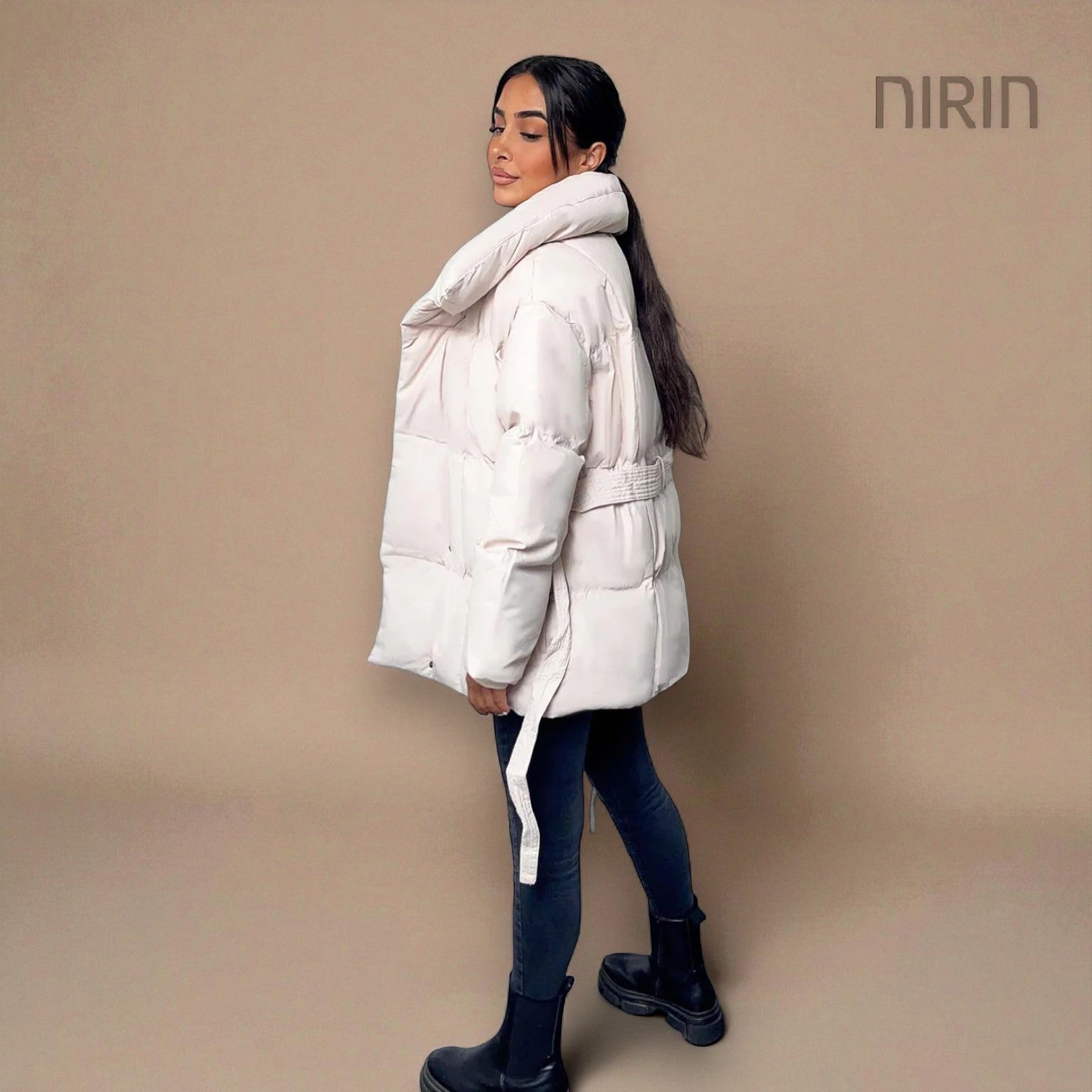 Moderne Short Pufferjas met Ceintuur